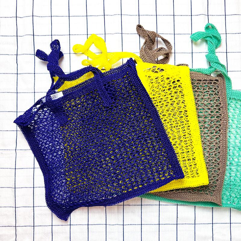 ナイロン素材の毛糸で編まれたトートバッグです。
